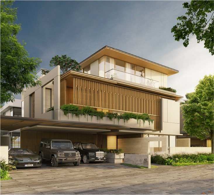 Our 10,809 sft villas are an ode to refined sophistication. Not to mention, an idyll of excess. 5 capacious bedrooms. 3 swanky floors. Spacious decks and balconies. A private plunge pool for both children and adults. Rooftop lounge bar. Airy bedrooms designed with provisions for walk-in closets. Exceptional baths with private landscaped decksand baththubs. Covered parking for 4 cars with provision for EV charging adds convenience. A courtyard with water bodies. The list is endless. The luxuries, limitless.